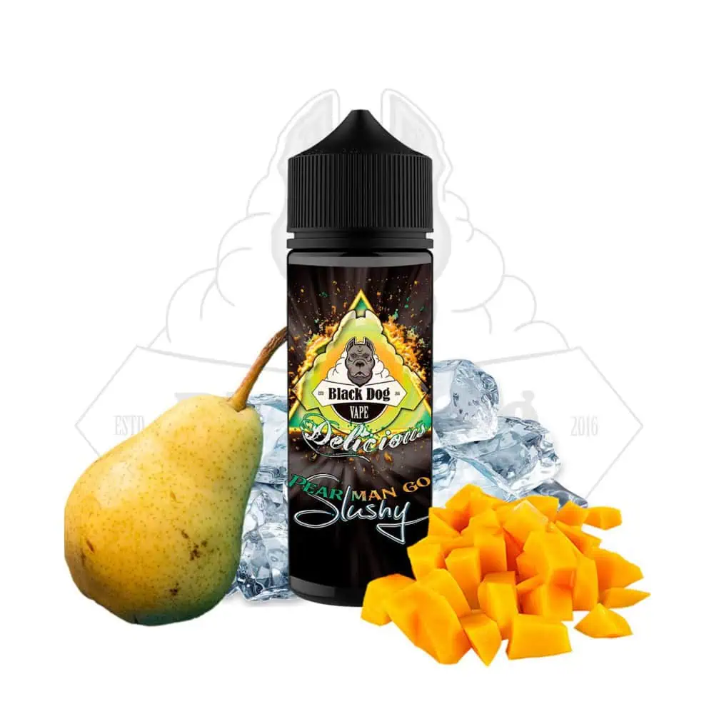Black Dog Vape Pear Man Go Slushy, ein fruchtig-kalter Slushy aus süsser Mango und saftiger Birne. Perfekte Erfrischung nicht nur im Sommer.